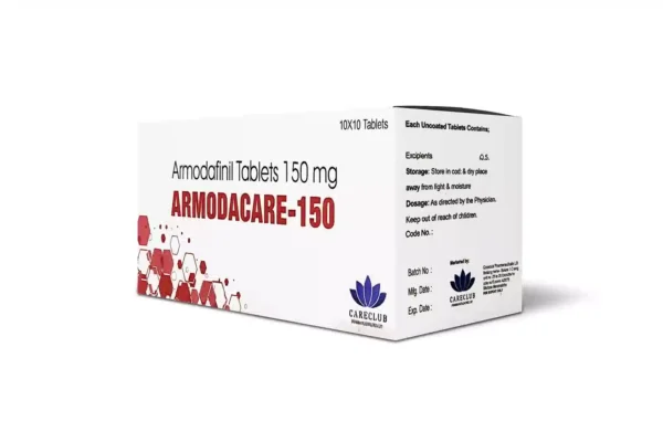 Armodacare 150mg is a medication that contains Armodafinil, this medication works by changing the balance of certain chemicals in the brain to promote alertness and improve cognitive function. It’s often compared to Modafinil, as both have similar uses and effects, but Armodafinil has a longer duration of action.